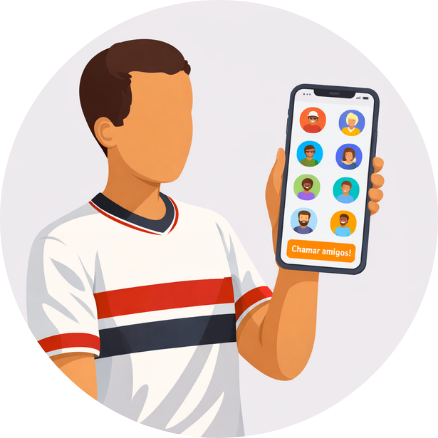 O TorcidaGo facilita convites entre amigos depois da escolha do jogo e do bar, aumentando visitas em grupo e o consumo por mesa.